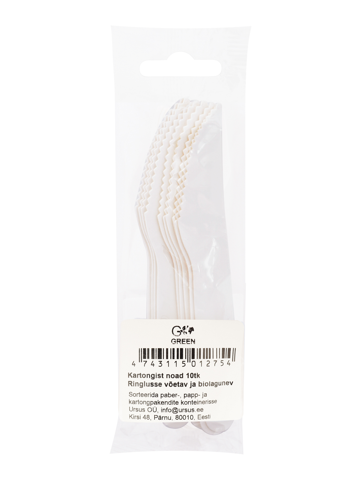 Ühekordsed plastikuvabad kartongist noad on ringlusse võetavad ja biolagunevad. Sorteerida paber-, papp- ja kartongpakendite konteinerisse.