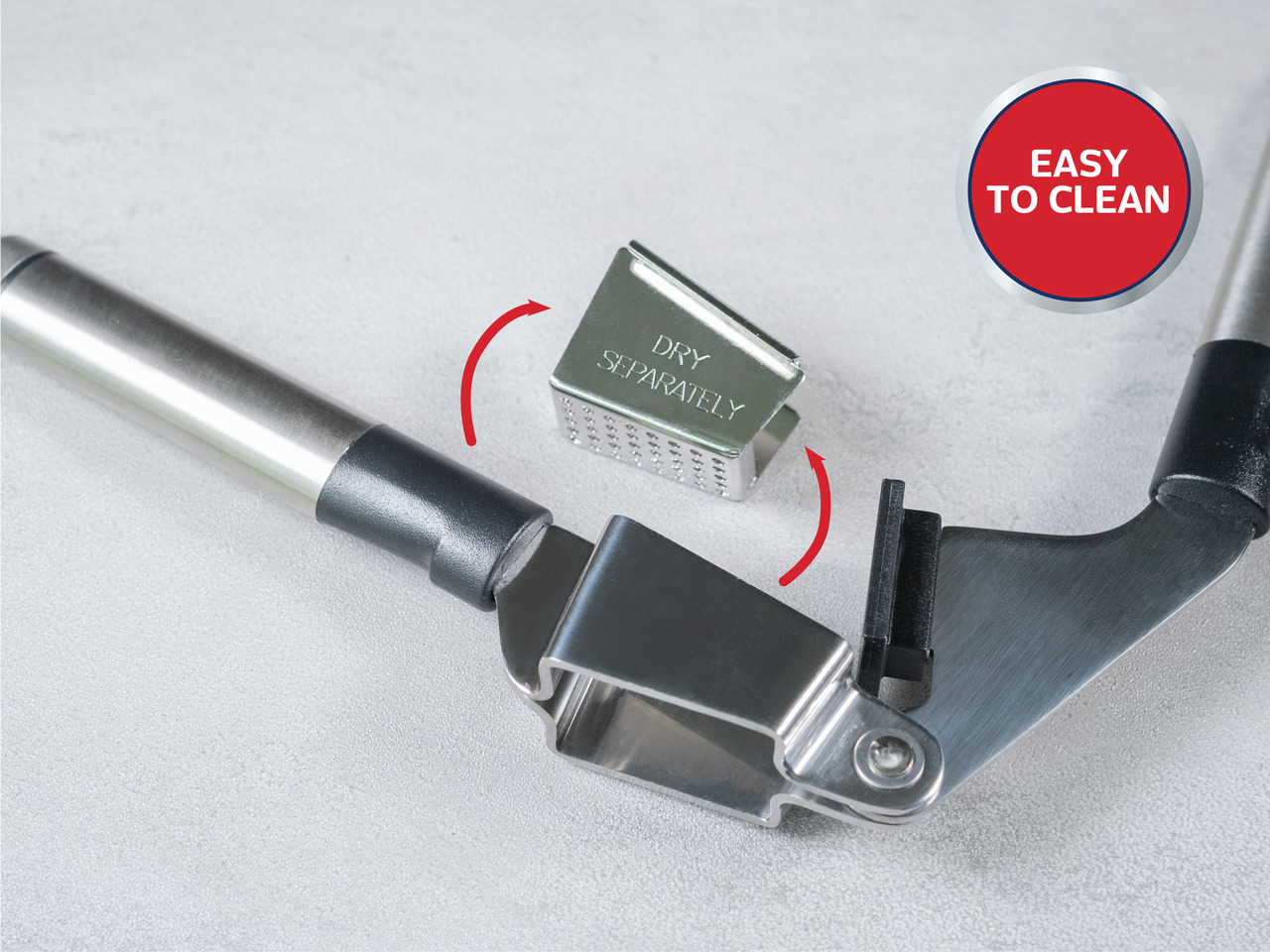 Ideaalne vahend küüslaugu purustamiseks nii kooritud kui koorimata küünele. Lihtne puhastada tänu eemaldatavale sisule. Võib pesta nõudepesumasinas.