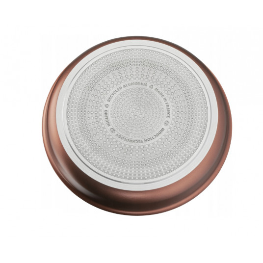Ringmajanduse pioneerina on Tefal alati tegutsenud nii, et keskkond oleks kaitstud. Eco Respecti sarjaga astume veel ühe sammu edasi: praepanni korpus on valmistatud 100% ümbertöödeldud alumiiniumist. Ümbertöödeldud alumiiniumi tootmiseks on vaja 99% vähem energiat kui uue alumiiniumi tootmiseks. Seda kõike kvaliteedis järeleandmisi tegemata ja uuenduslikult: Titanium Pro kestab kaks korda kauem kui Tefali standardne titaankate ning tagab toote pika eluea. Lisaks on nii sees- kui ka väljastpoolt mittenakkuva kattega toodet ülilihtne puhastada. Thermo-Signal tehnoloogia näitab ära ideaalse temperatuuri toiduvalmistamise alustamiseks, et saaksite täiuslikult pruunistada ja valmistada rikkaliku maitsenüanssidega eineid. Thermo-Fusion põhi tagab optimaalse kuumuse jaotamise ja ühtlased tulemused. Tutvuge selle praepanniga, mis on mõeldud ühtlaseks pruunistamiseks ja rasvavabaks toiduvalmistamiseks, seda tänu kõrgekvaliteetsele mittenakkuvale pealispinnale ja nii, et toit maitseb ikka sama hästi. Ja et me kõik saame planeedi kaitsmiseks rohkem teha, suunake oma kööginõud ümbertöötlemisse! Sobib kasutamiseks induktsioon, gaasi, elektri– ja keraamilise pliidiga.