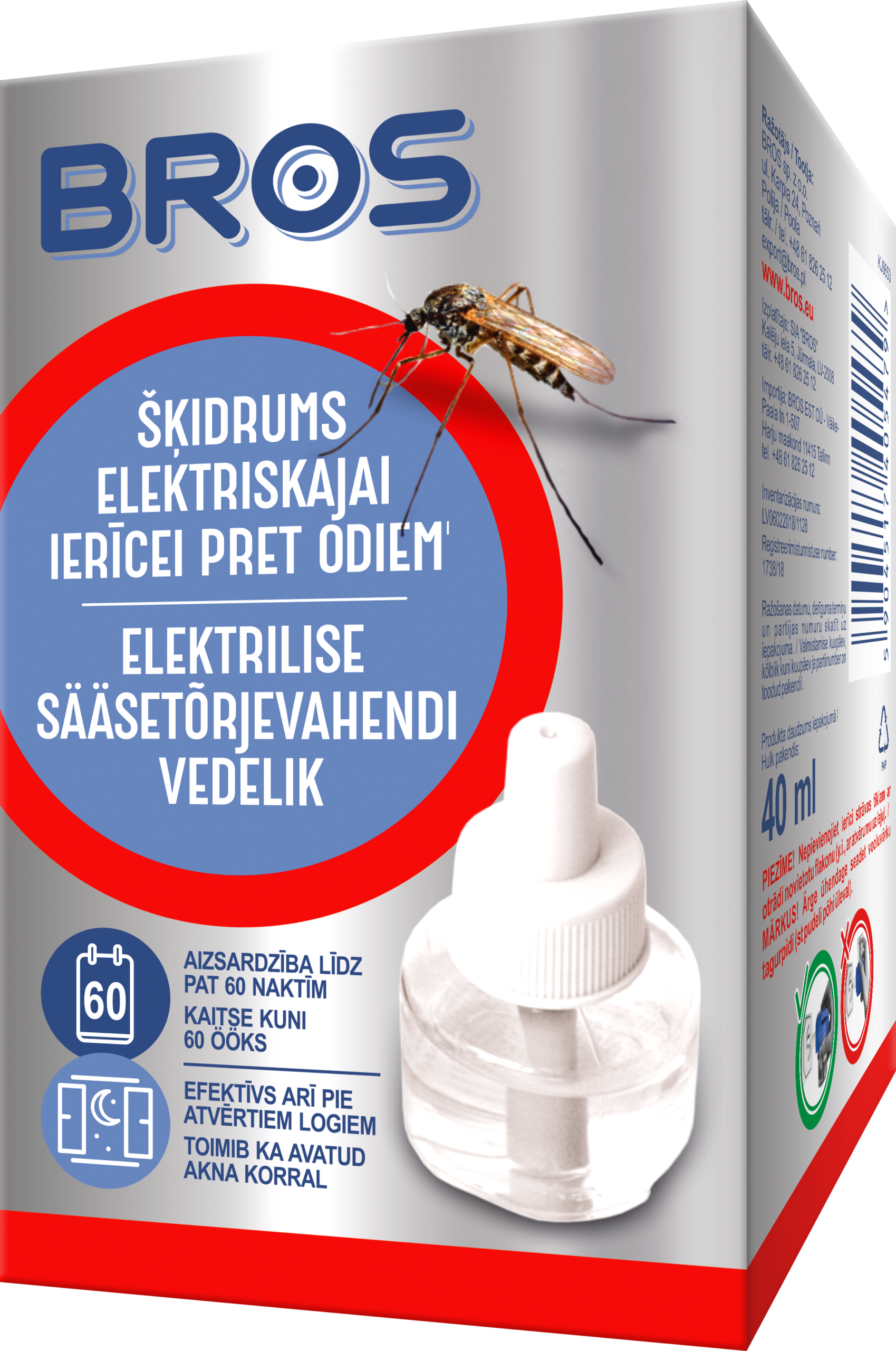 Täitevedelik elektrilisele sääsetõrjeseadmele. Elektriline fumigaator annab öösel efektiivse kaitse valguse peale kogunenud sääskede vastu. Seadme elektrivõrku ühendamisel hakkab toimeaine aurustuma, mis hävitab juba ruumis olevad putukad ja takistab uute putukate ruumi lendamist. Üks täidis tagab kaitse sääskede eest kuni 60 ööks.