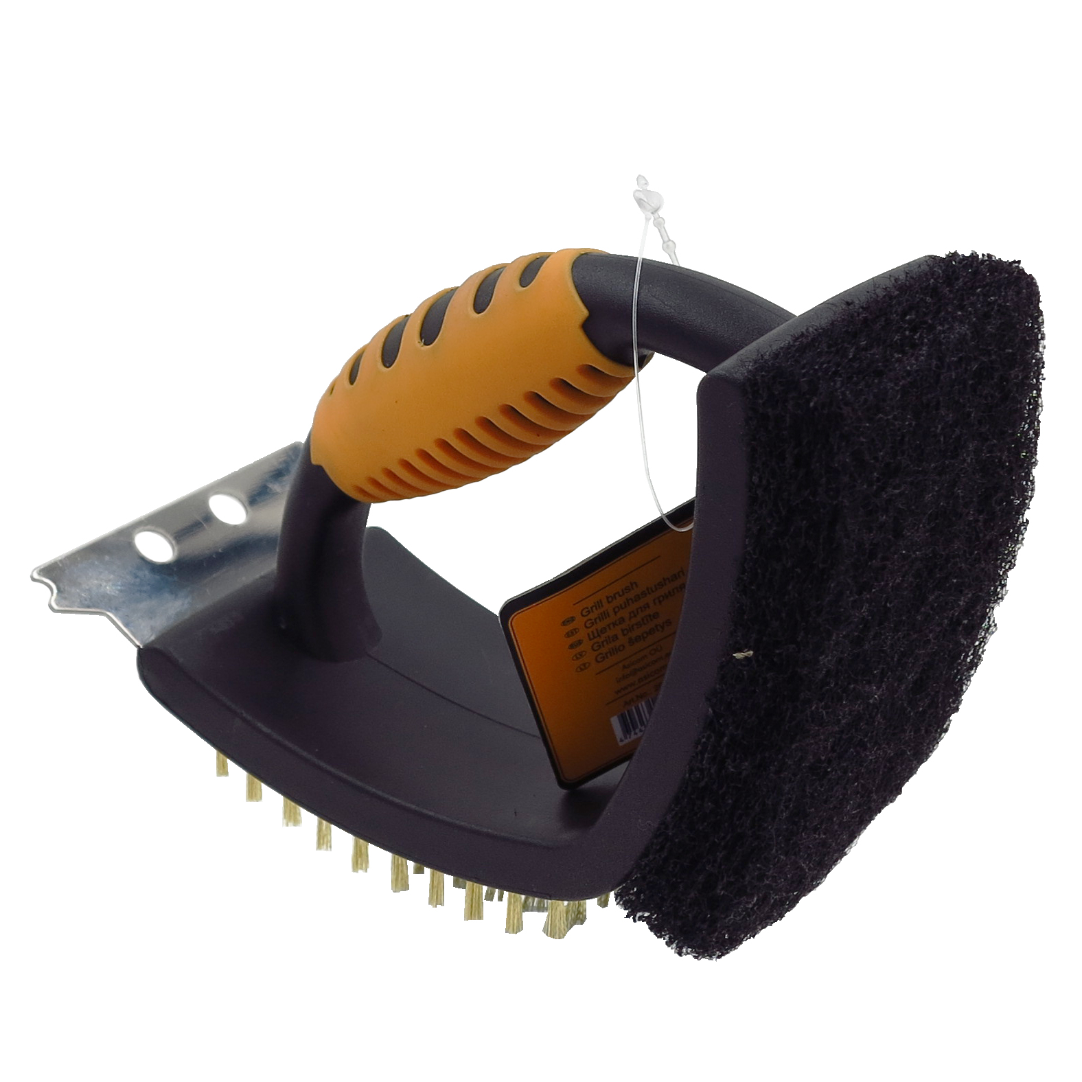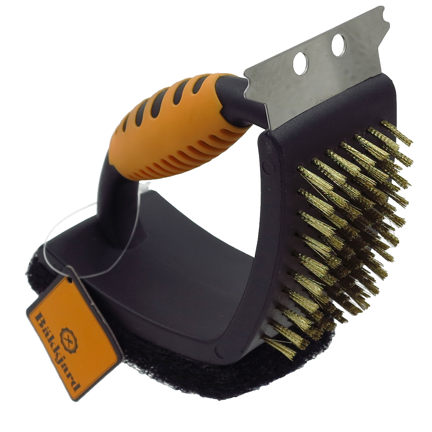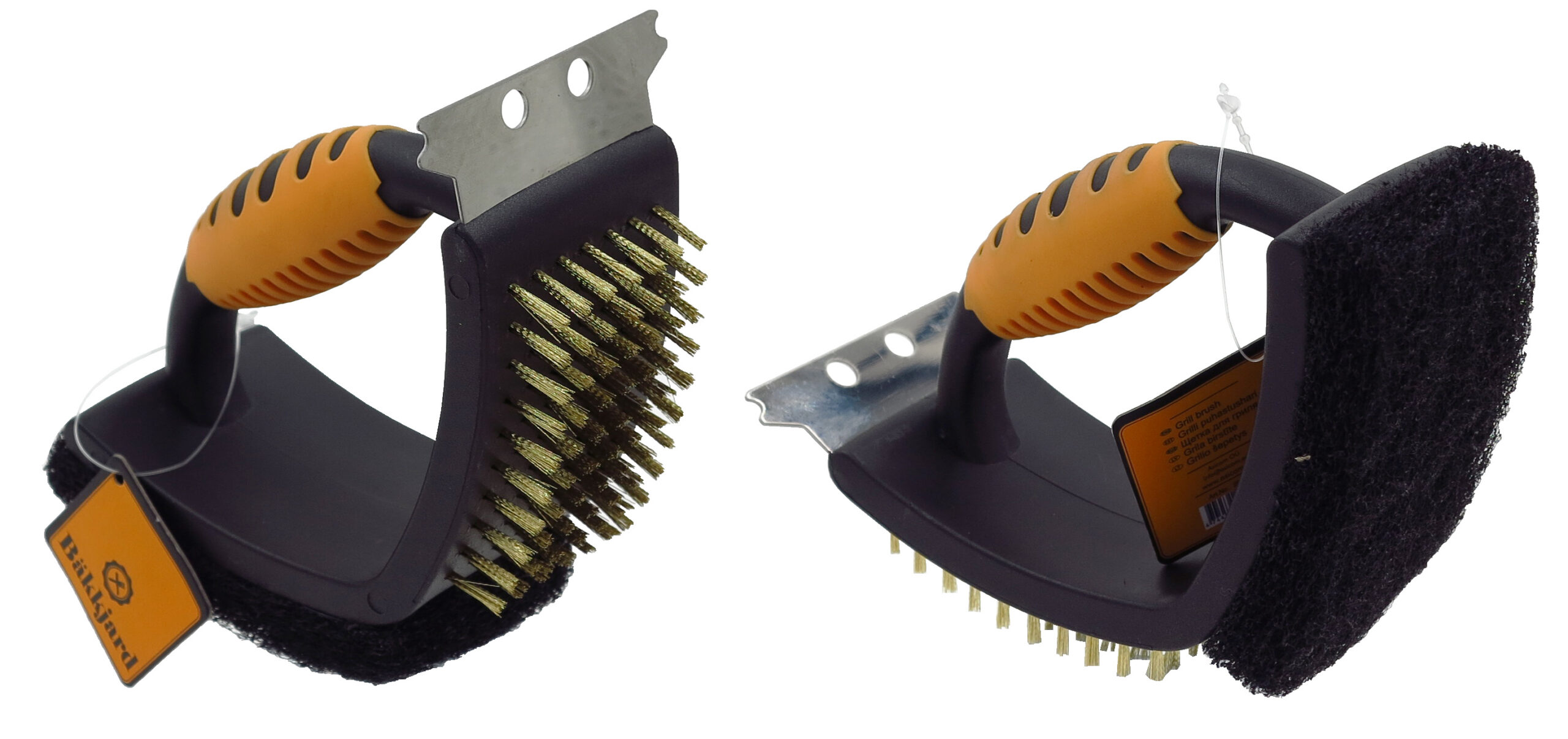 Käepärane ja mugav grilli puhastushari 3in1 – metallist harjased, tugev karenuustik ja puhastuskaabits.