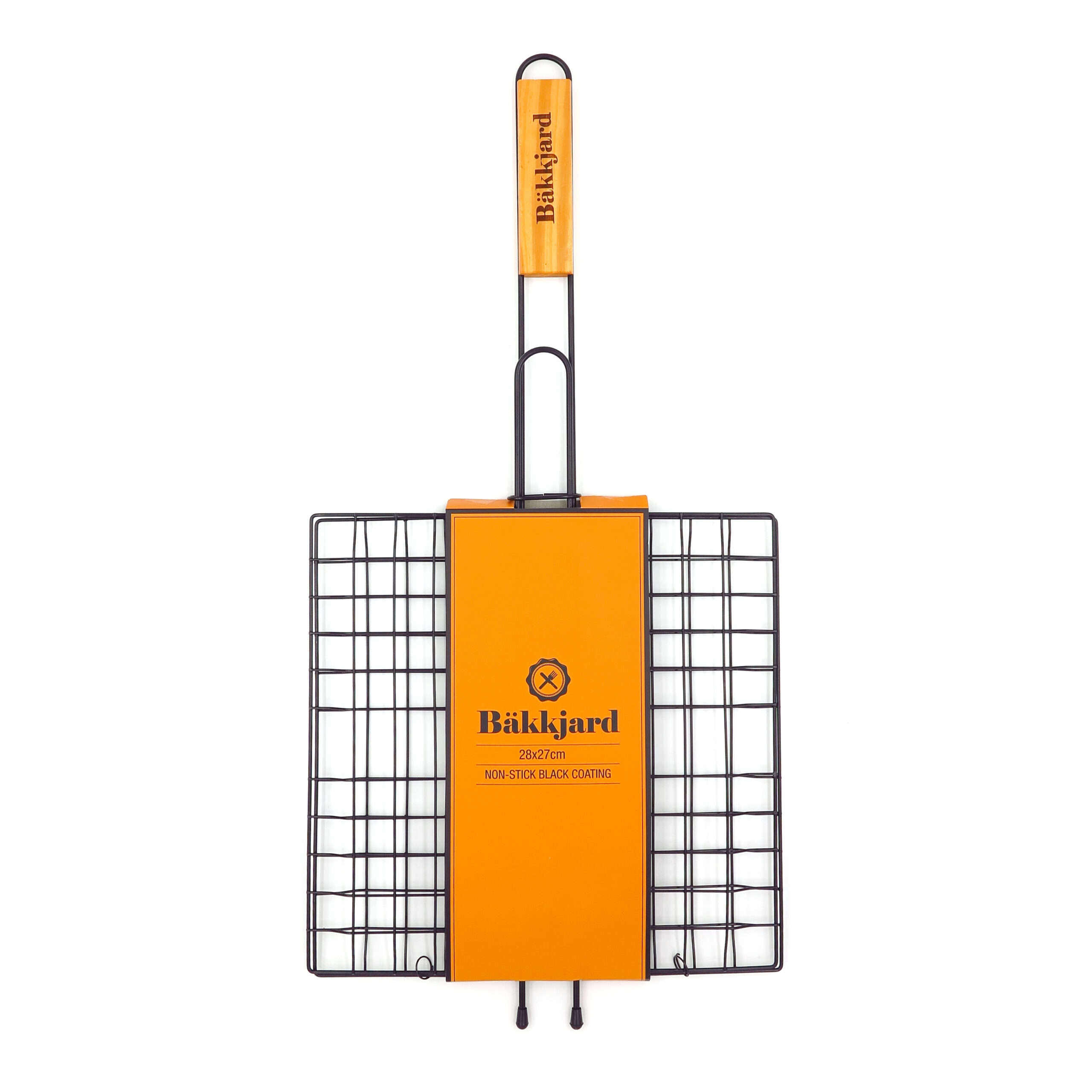 Puidust käepidemega grillimisrest erinevatel grillidel või lõkkel grillimiseks. Resti on mugav keerata. Musta mittenakkuva kattega (Non-stick) viimistlus aitab vältida grillitava toidu kleepumist resti külge. Lihtne puhastada. Grillimisala suurus 28x27cm.