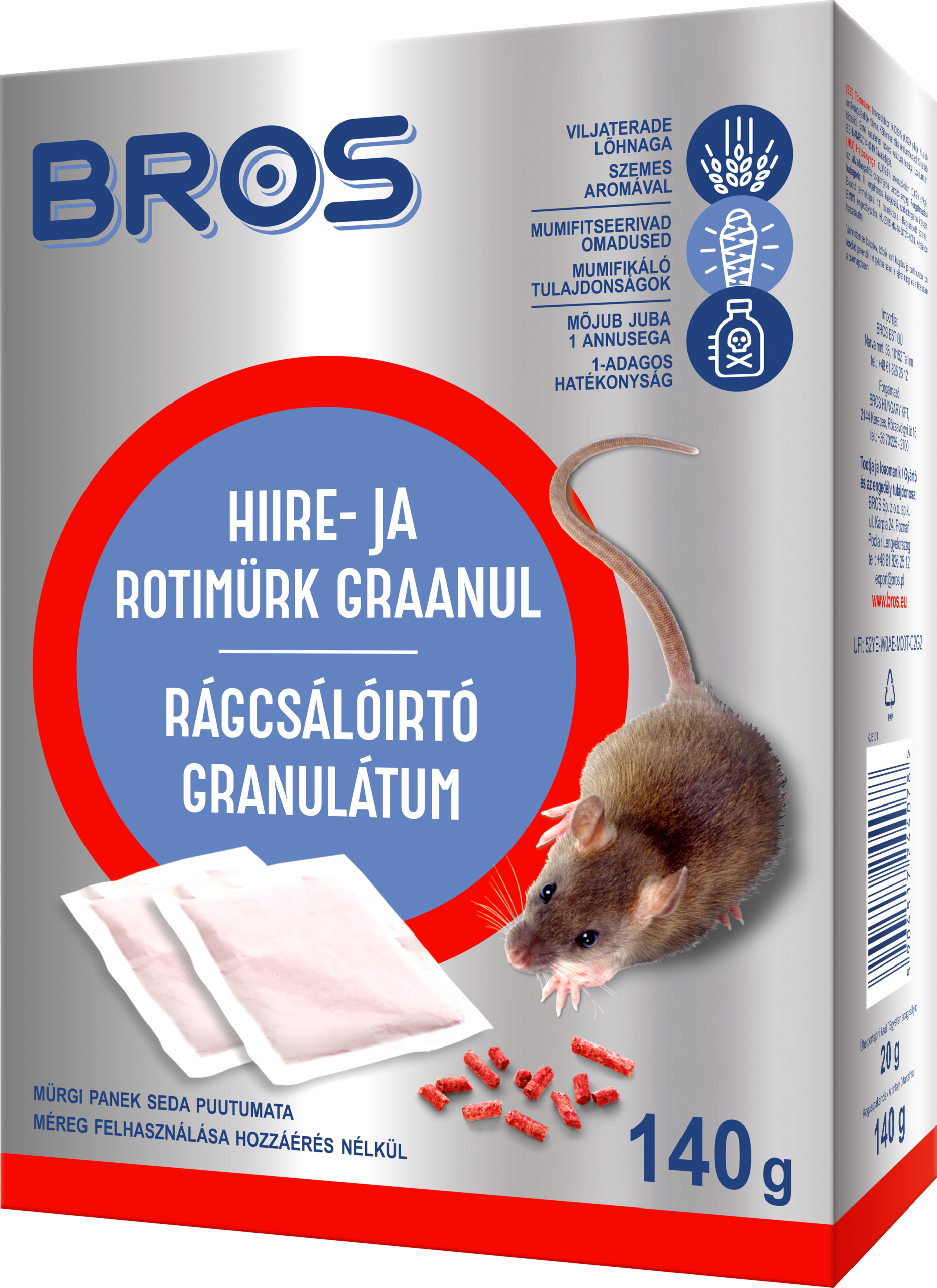 Populaarne ja ennast tõestanud mürk, mida saab kasutada siseruumides ja hoonete ümbruses. Graanulite õige kõvadusaste ja spetsiaalsed maitseained (sh maisi maitseaine) muudavad toote närilistele iseäranis meeldivaks. Tootel on palsameerivad omadused ja see sisaldab aineid, mis takistavad selle soovimatut allaneelamist inimeste ja lemmikloomade poolt.