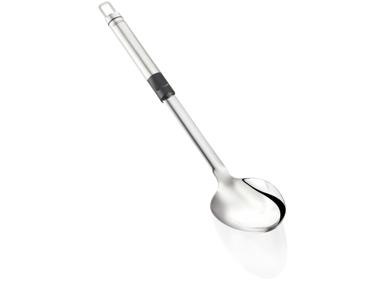 Stiilne, lihtne, elegantne ja vastupidav ajatu disainiga juurviljalusikas. Ovaalse kujuga käepide on valmistatud roostevabast terasest kombineerituna musta plastikuga. Lusikat on käes mugav hoida. Eriti vastupidav , nõudepesumasinas pestav. Praktilise riputusaasaga, mida saab mugavalt riputada köögitarvikute hoidjale.