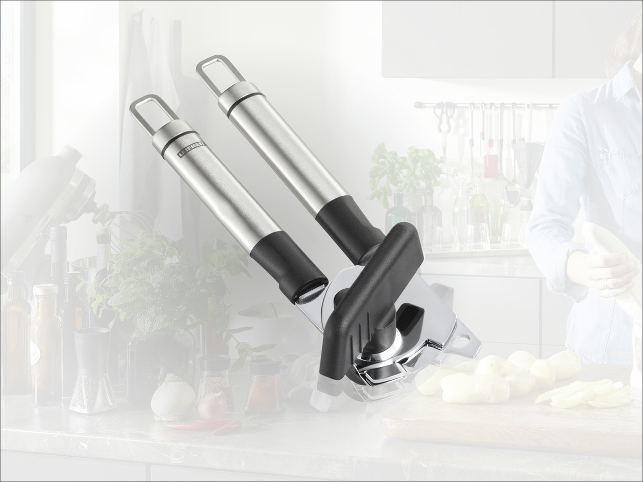 Stiilne, lihtne, elegantne ja vastupidav ajatu disainiga köögitarvik. Ovaalse kujuga käepide on valmistatud roostevabast terasest kombineerituna musta plastikuga. Ilma erilisi jõupingutusi nõudev ja kergelt käsitletav konservikaaneavaja, karastatud lõiketeraga. Lisaks juures integreeritud pudeliavaja. Eriti vastupidav, nõudepesumasinas pestav. Praktilise riputusaasaga, mida saab mugavalt riputada köögitarvikute hoidjale.