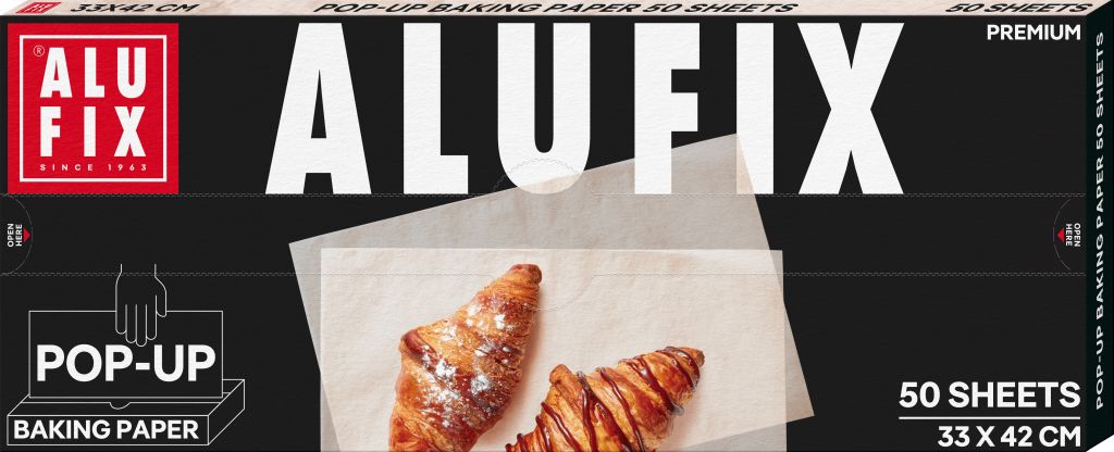 Premium kvaliteediga küpsetuspaberilehed suurusega 33x42cm, pakendis 50tk. Küpsetuslehtede pind on mittenakkuv ja väga hea rasvakindlusega, kuna on töödeldud spetsiaalse silikooniga mõlemalt lehe poolt. Kuumuskindel kuni 220 °C”, sobib kasutamiseks ka mikrolaineahjus. Pakendist on välja võtta eriti mugav ja lihtne tänu uuenduslikule POP-Up süsteemile. Küpsetuspaber on valmistatud kõrgeima kvaliteediga tsellulooskiududest.