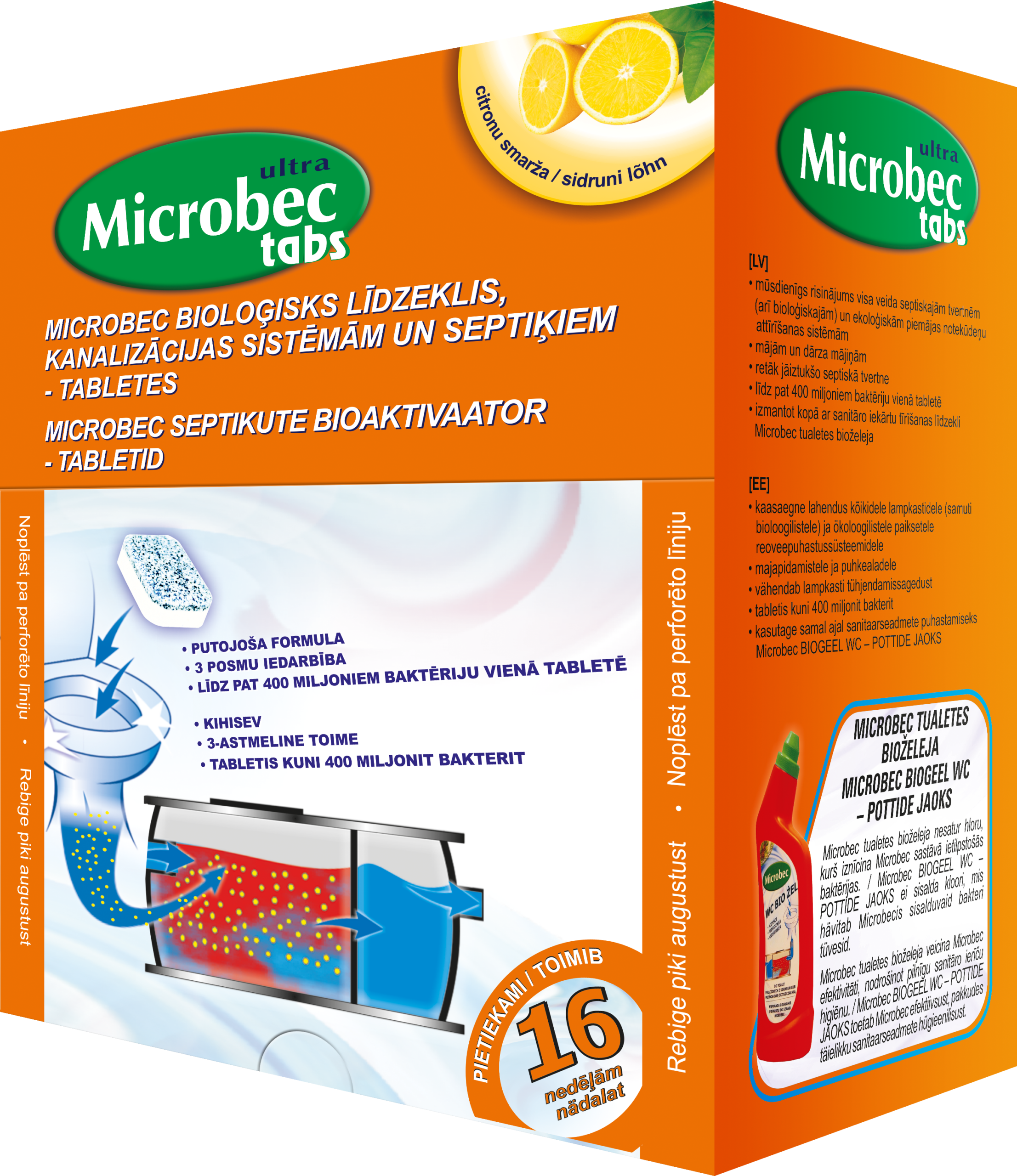 Mikrobioloogiline ensümaatiline toode tabletina lampkastide sisu biolagundamiseks. Regulaarse kasutamise korral aitab vähendada lampkastide tühjendamissagedust, suurendab paikse reoveepuhastussüsteemi efektiivsust, eemaldab ebameeldiva lõhna ja avab reovee kanalisatsioonisüsteemi ummistused.