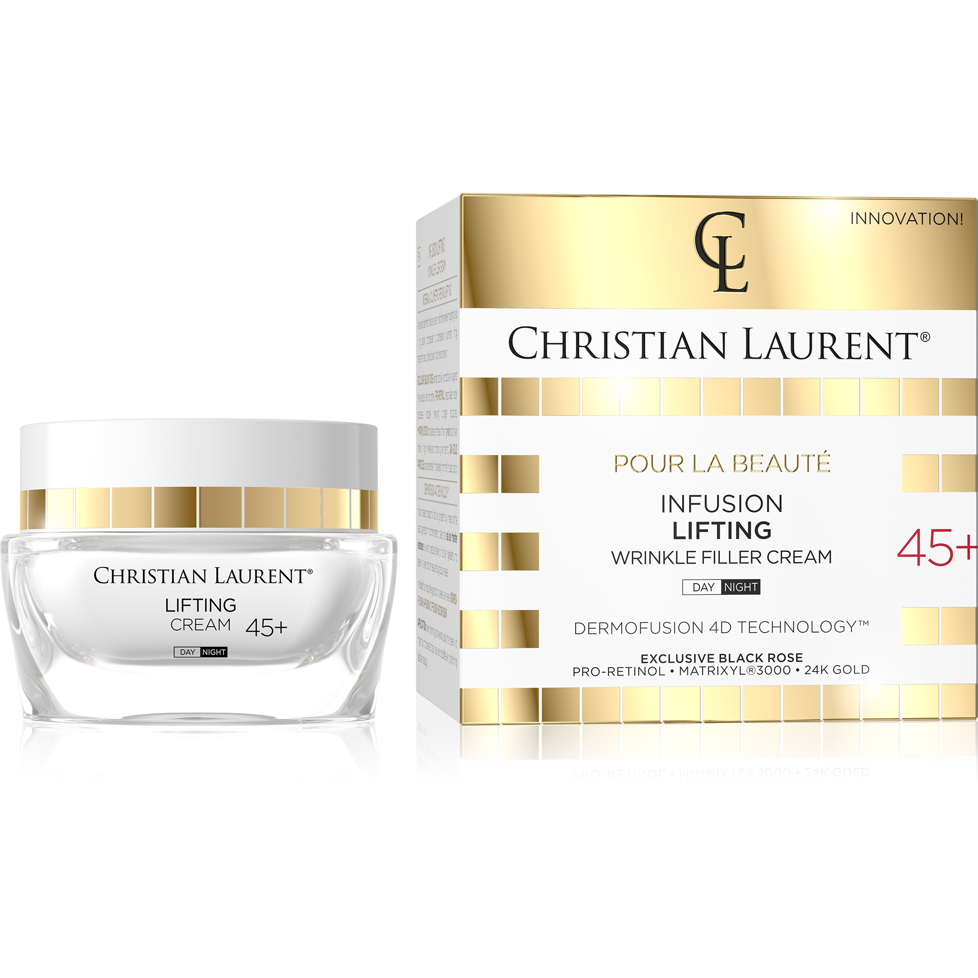 Täiustatud koostisega näokreem elustab õrna naha, võitleb peenete joonte ja kortsude tekkega, taastades naha elastsust. Ülim nahahooldus vanusele 45+ aastat. Sobib nii päevaseks kui ka öiseks näohoolduseks. EKSKLUSIIVNE BLACK ROSE kaitseb nahka vabade radikaalide tekke eest. PRO-RETINOL uuendab kollageeni struktuure. 24K KULLAOSAKESED siluvad nahka. MATRIXYL®3000 stimuleerib naha koostisosade sünteesi, täites kortse ja parandades naha tihedust.