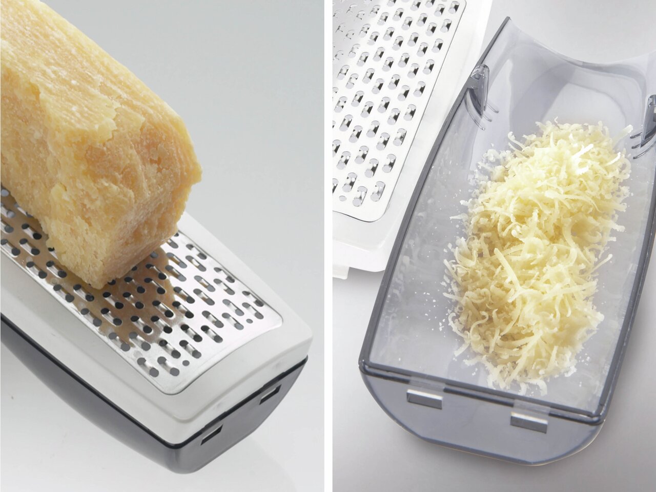 Efektiivne riivimispind võimaldab riivida kahesuunaliselt. Ergonoomilise kogumis- ja doseerimisanumaga. Nõudepesumasinakindel. Kombineeritud roostevaba terase ja kvaliteetse plastikuga.