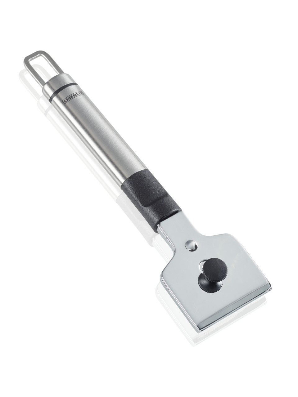Leifheiti pliidiplaadi kaabits on kõrge funktsionaalsuse ja suurepärase disainiga. Eemaldab lihtsalt kõrbenud toidu pliidi plaadilt. Terakaitse on väga praktiline: see hoiab ära teiste esemete kriimustamise, kui kaabitsat sahtlis hoida. Samuti muudab see ohutuks hoiustamise ilma vigastuste ohuta ja kaitseb lõiketeri. Pliidiplaadi kaabitsa puhastamine on samuti väga lihtne. Pühkige lihtsalt niiske lapiga ja see on uuesti kasutamiseks valmis. Varuterad saab hoida Leifheiti pliidiplaadi kaabitsa peas. Kaasas kolm tera.
