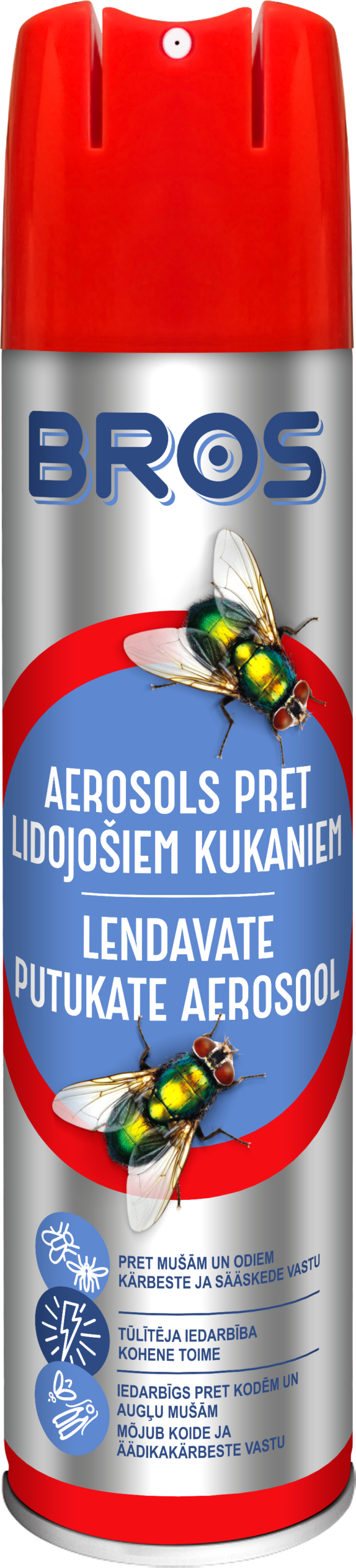 Aerosoolmürk efektiivseks lendavate putukate tõrjumiseks siseruumides: kärbsed, sääsed, äädikakärbsed ja riidekoid.