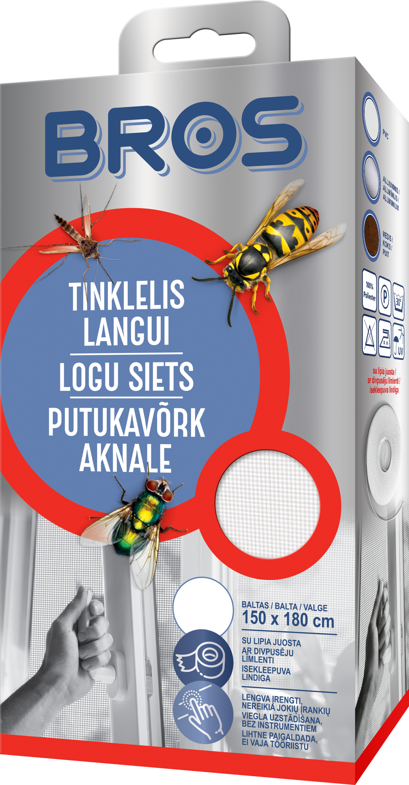 Kaitseb ruume efektiivselt kõikide putukate eest. Kleepuv Velcro-pael võimaldab mugavat kinnitamist ja eemaldamist. Määrdunud võrku saab pesta.