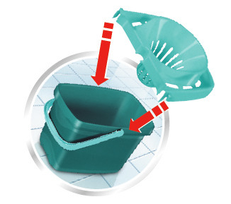Leifheit Combi põrandapesija ämbri praktiline ümar väänamissõel muudab põrandapesu mugavamaks, kuna tänu sellele ei ole vaja mopi loputamisel kummardada ega käsi märjaks teha. Sõel kinnitub ämbrile lihtsa vaevaga ning fikseerub oma kohale “klikiga”. Kasutamiseks aseta mopi otsik sõelale ja vääna üleliigne põrandapesuvesi otsikust välja. Vajadusel korda tegevust.
