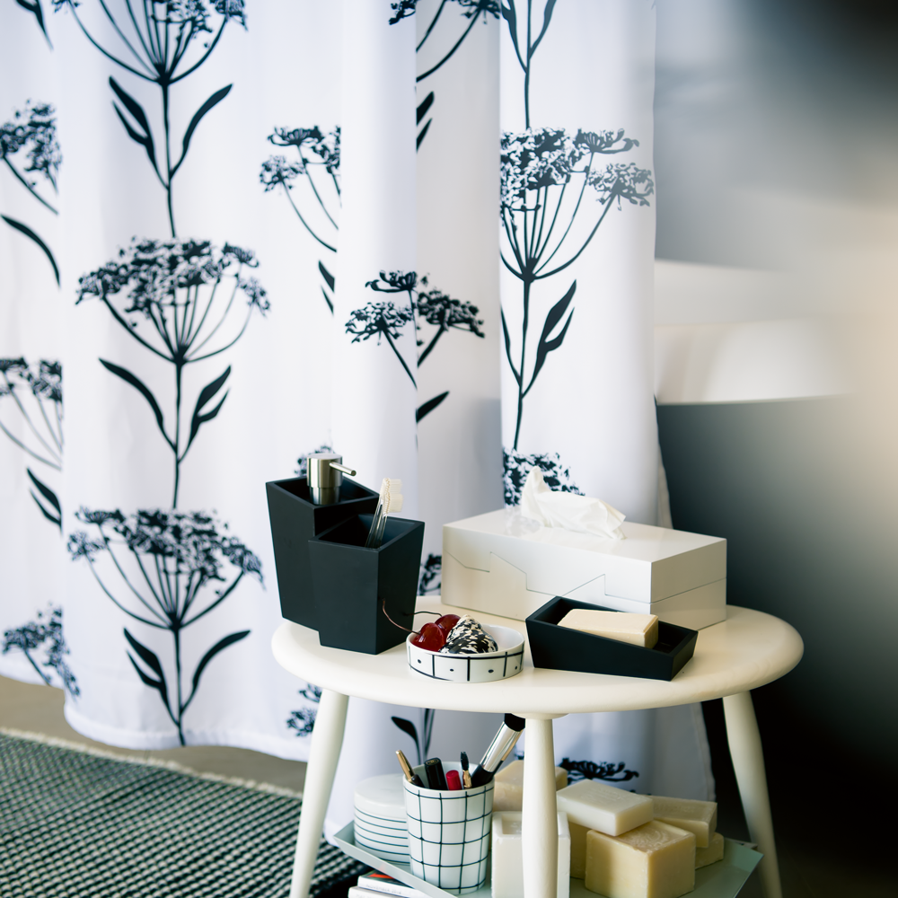Duši- ja vannikardin, materjal 100% polüester. Mõõdud 180x200cm. Pestav ja triigitav, nahasõbralik, vett-tõrjuv ja pleekimiskindel. Muster ei kulu pesemisel. Lihtne hooldada, kuivab kiiresti. Pesemisel mitte kasutada pesuloputusvahendit. Triikimine aktiveerib vett-tõrjuva efekti, triikida seestpoolt 2. kuumusastme juures. Ülaservas 12 tugevdatud rõngaauku, allservas raskuspael. Kardinarõngad ei kuulu komplekti. Šveitsi kvaliteet.
