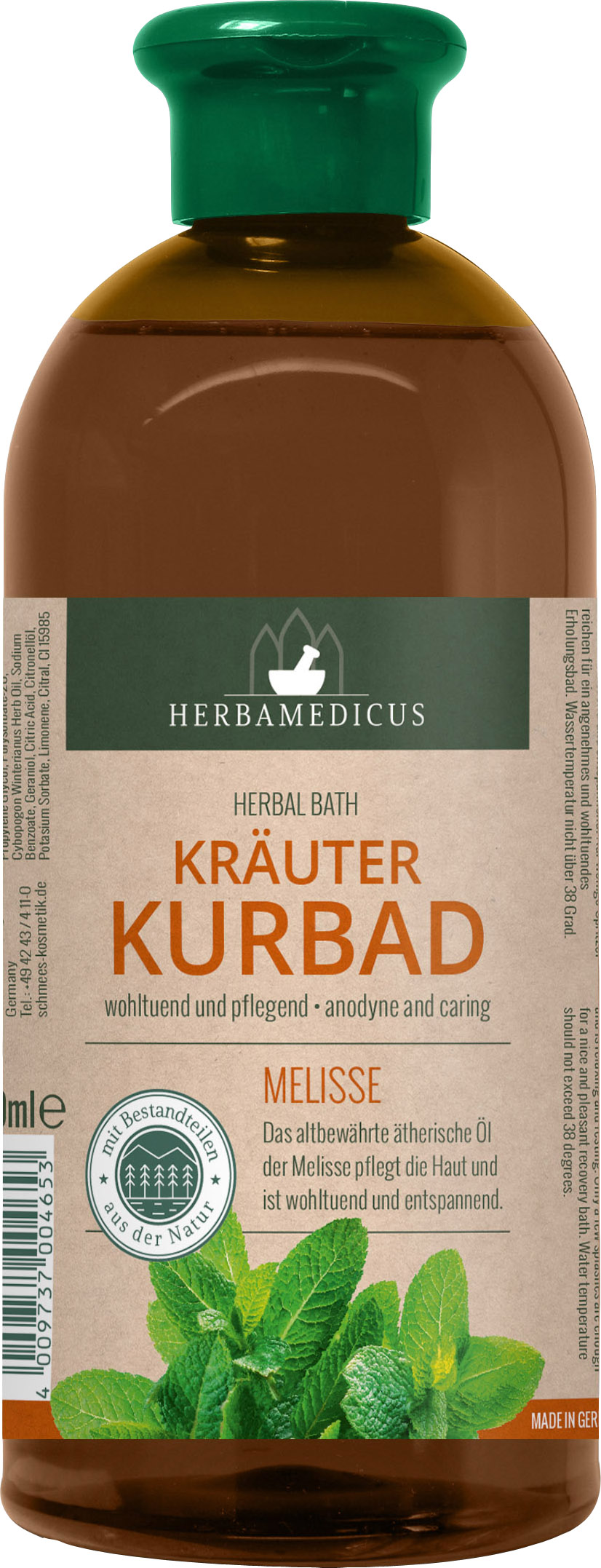 Loodusliku taimeekstraktiga vannivaht Meliss. Melissiõli hooldab nahka ning on rahustava ja lõõgastava toimega. Kasutamine: Lõõgastavaks ning meeldivalt kosutavaks vanniskäiguks piisab vähese koguse vannivahu lisamisest vanniveele.