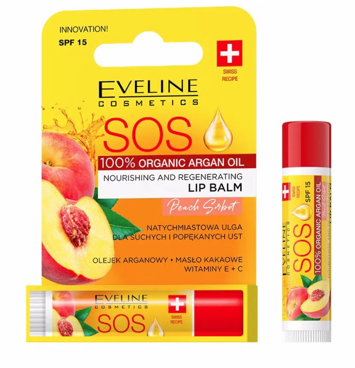 Toitev ja taastav huulepalsam SPF15 SOS Peach Sorbet